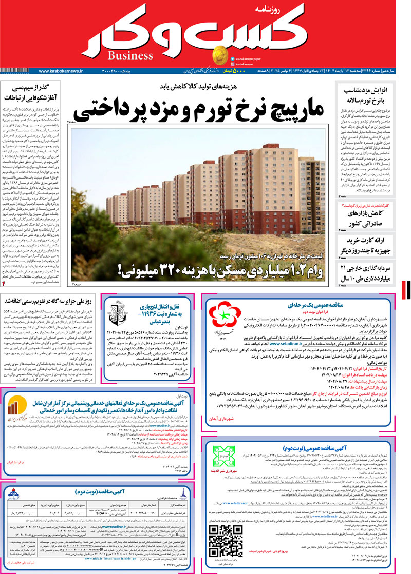 ۱۴۰۴/۰۸/۱۲18:43 روزنامه, سرخط خبرها دیدگاه خود را بیان کنید