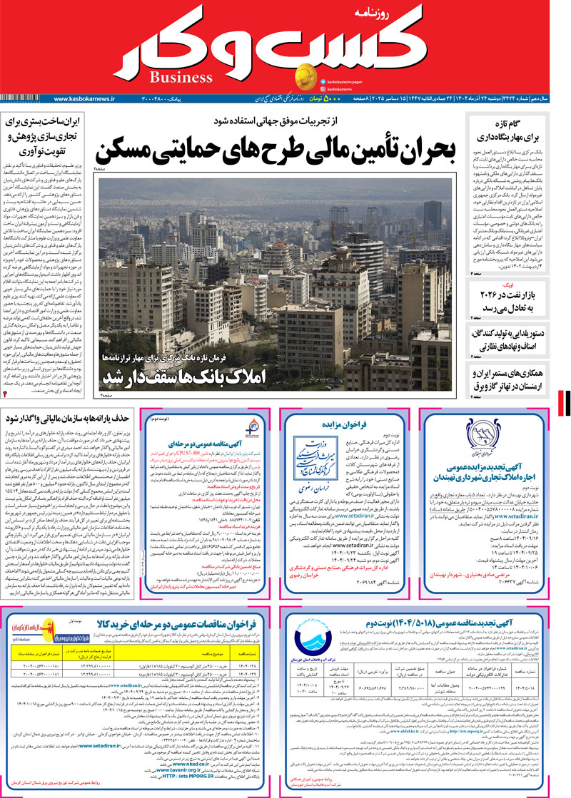 شماره ۳۴۲۴ روزنامه کسب و کار
