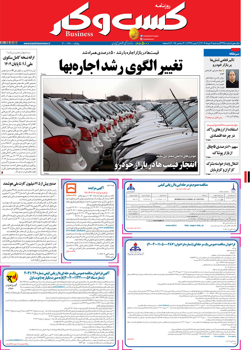 شماره ۳۴۳۵ روزنامه کسب و کار ۱۴۰۴/۱۰/۰۸18:39 روزنامه, سرخط خبرها دیدگاه خود را بیان کنید دانلود PDF نسخه ی جار اشتراک گذاری Facebook Telegram Twitter LinkedIn