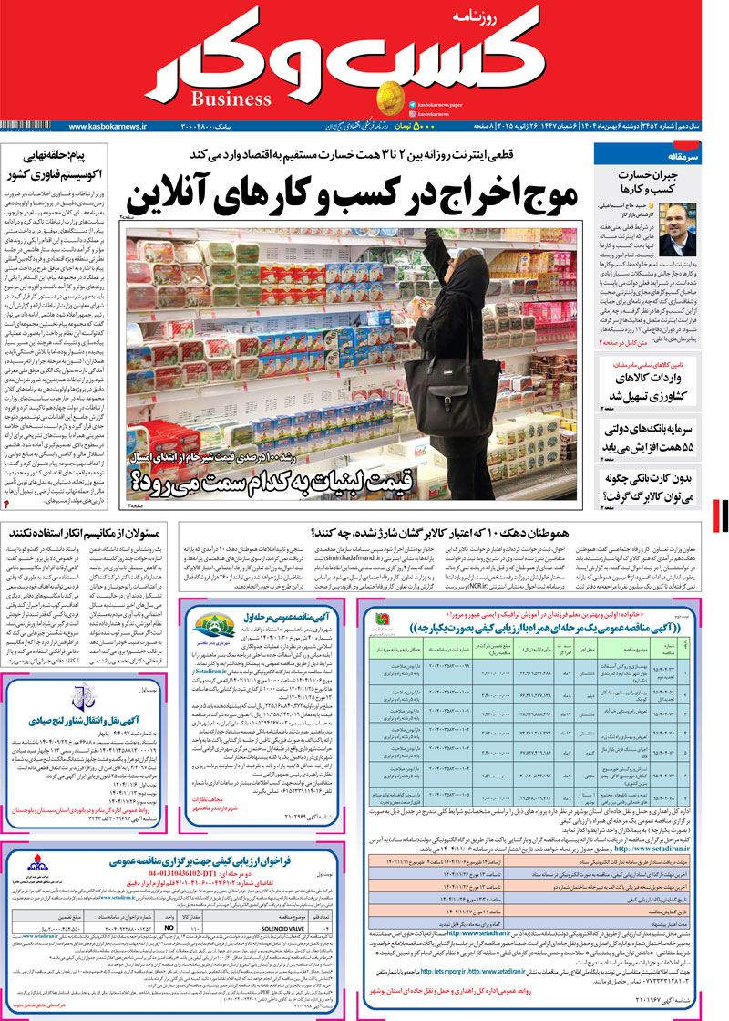 صفحه اصلی / روزنامه / شماره ۳۴۵۲ روزنامه کسب و کار