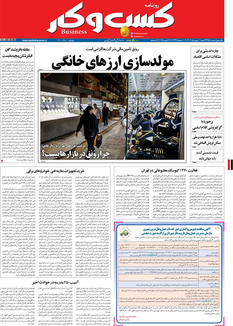 صفحه اصلی / روزنامه / شماره ۳۴۵۵ روزنامه کسب و کار
