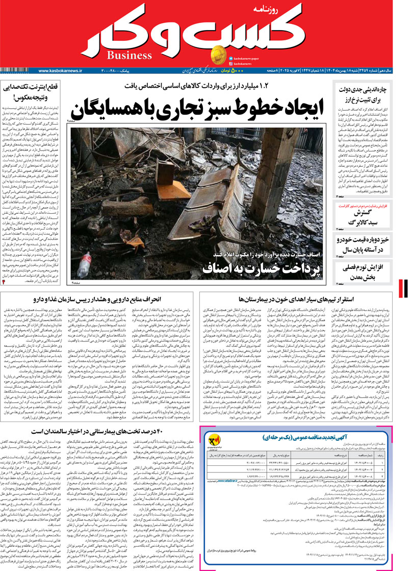 صفحه اصلی / روزنامه / شماره ۳۴۵۹ روزنامه کسب و کار