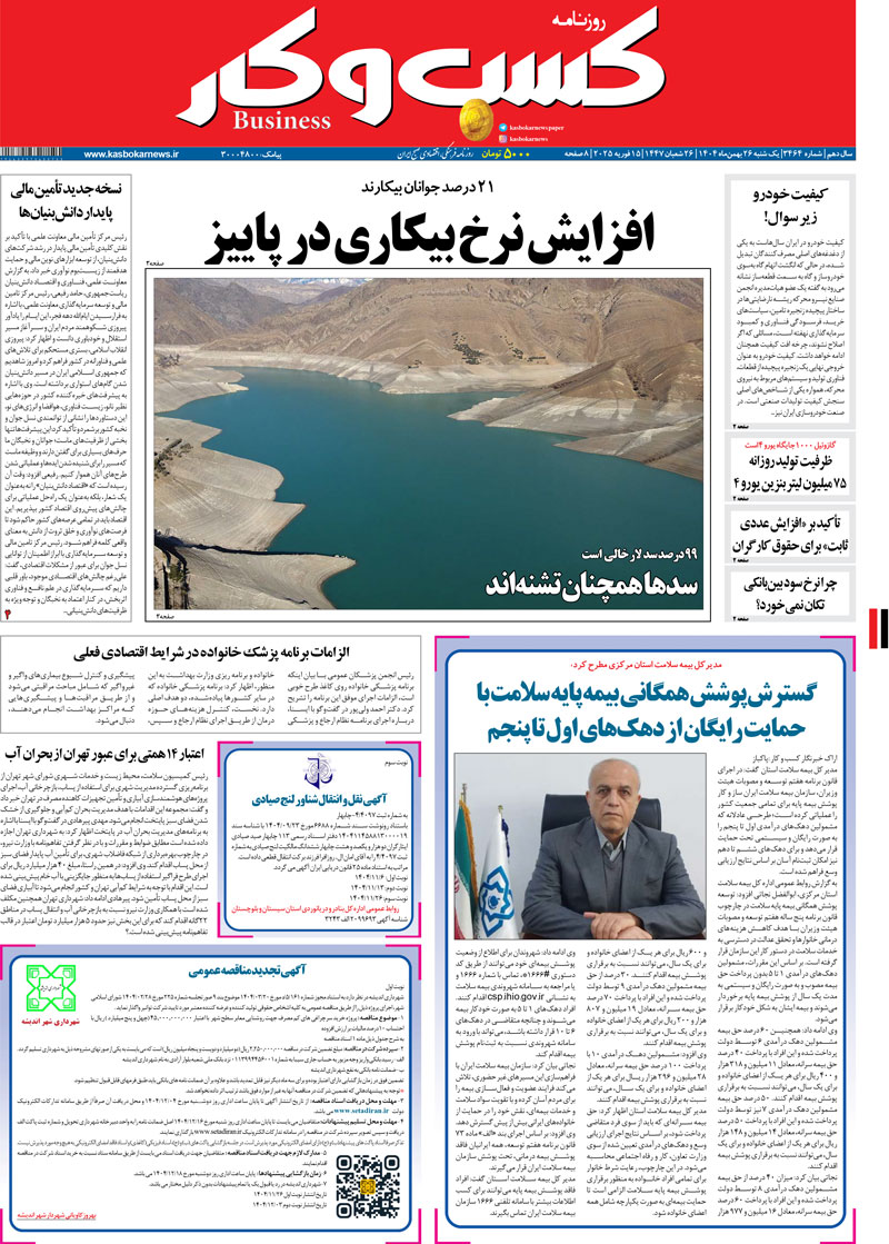 شماره ۳۴۶۴ روزنامه کسب و کار ۱۴۰۴/۱۱/۲۵19:10 روزنامه, سرخط خبرها دیدگاه خود را بیان کنید دانلود PDF نسخه ی جار اشتراک گذاری Facebook Telegram Twitter LinkedIn